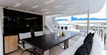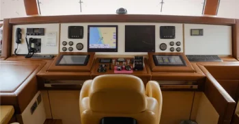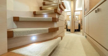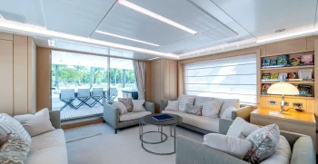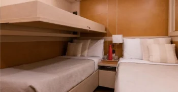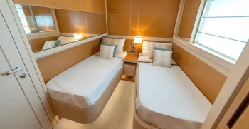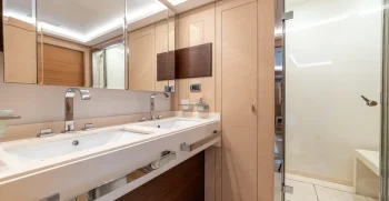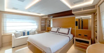 It is very rare at this size to have a main deck master suite that gives a huge amount of space, accompanied by commanding views. A further 2 VIP double cabins and 2 twin cabins, which both have a Pullman bunk option, meaning that this yacht can sleep 12 guests, which puts her in a class-leading accommodation position for her size.