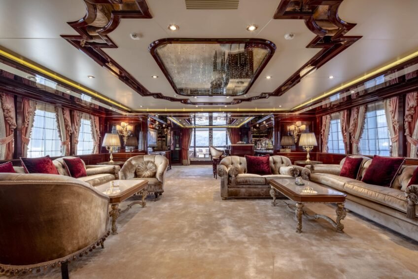Discover the M/Y Richar, a 57m (186ft) 2008 CRN mega-yacht with four decks and 944 GT. Featuring a Baroque-style interior with mahogany, marble, crystal, and gold-appliqué finishes, she accommodates 14 guests in six luxury cabins. Highlights include a master suite on the main deck, VIP cabins, a panoramic lounge with hidden movie projector, 6.5m pool with adjustable current, wellness center, sauna, massage room, and fitness suite. Powered by Caterpillar engines, she cruises at 12.5 knots with a 4,500-mile range. Comes with two tenders, jetskis, seabobs, and full crew accommodations. Privately used, meticulously maintained, and in excellent condition.