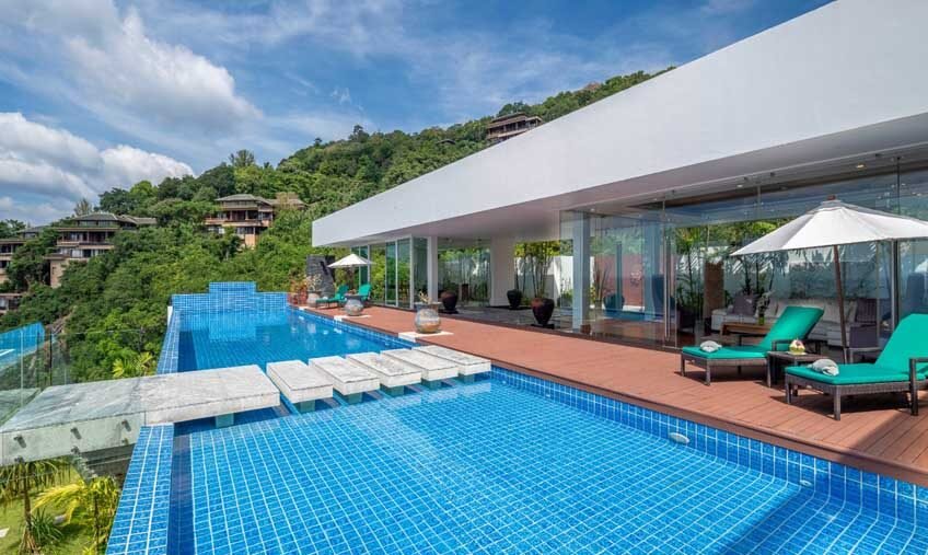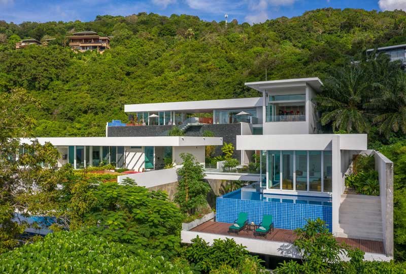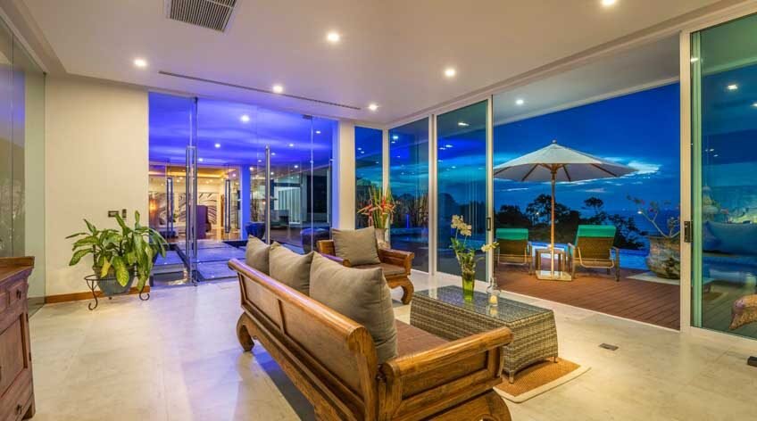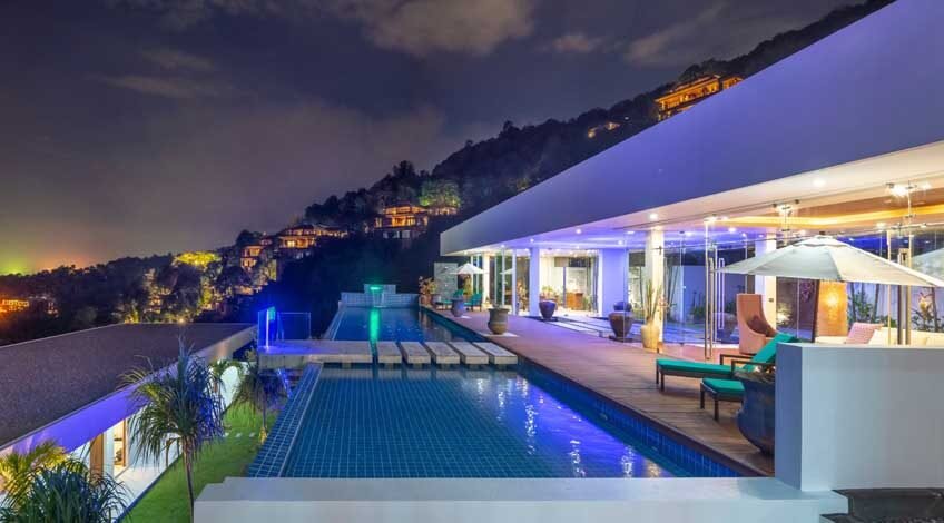 Thoroughly modern styled, super villa, with staggering panoramic sea and sunset views at Kamala.