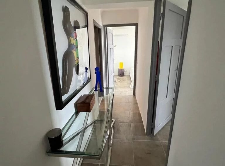 in a prestigious residence facing the beaches beautiful three-room apartment (double living room, two bedrooms, 2 bathrooms, teak garden terrace, cellar and underground parking (rental)