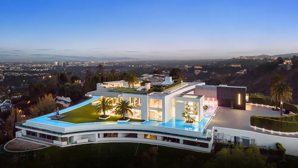 Once touted as the largest and most expensive private home in the United States, The One in Bel Air represents the epitome of ultra-modern luxury. Spanning 105,000 square feet, this colossal estate includes 21 bedrooms, a nightclub, a 30-seat movie theater, a bowling alley, and even a moat.